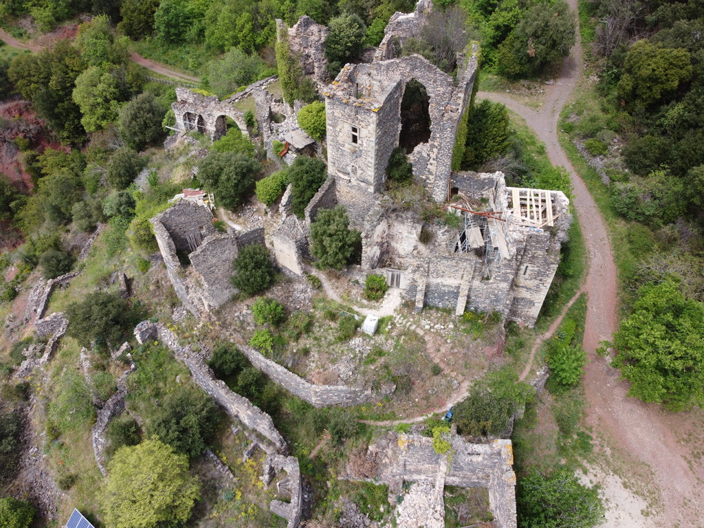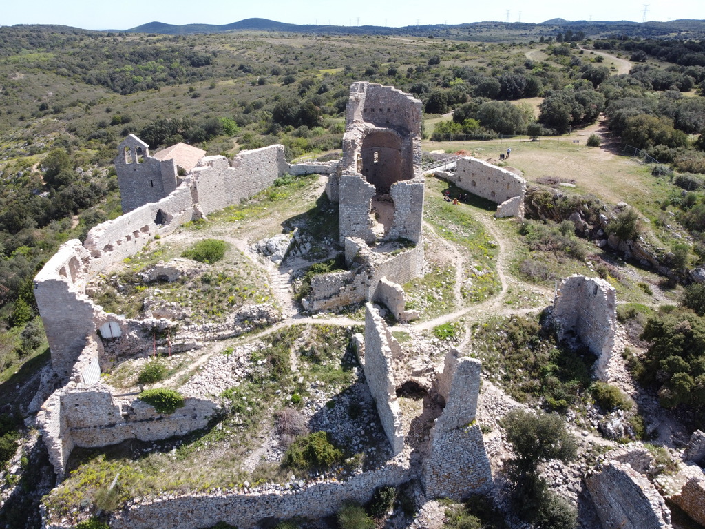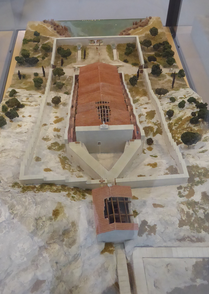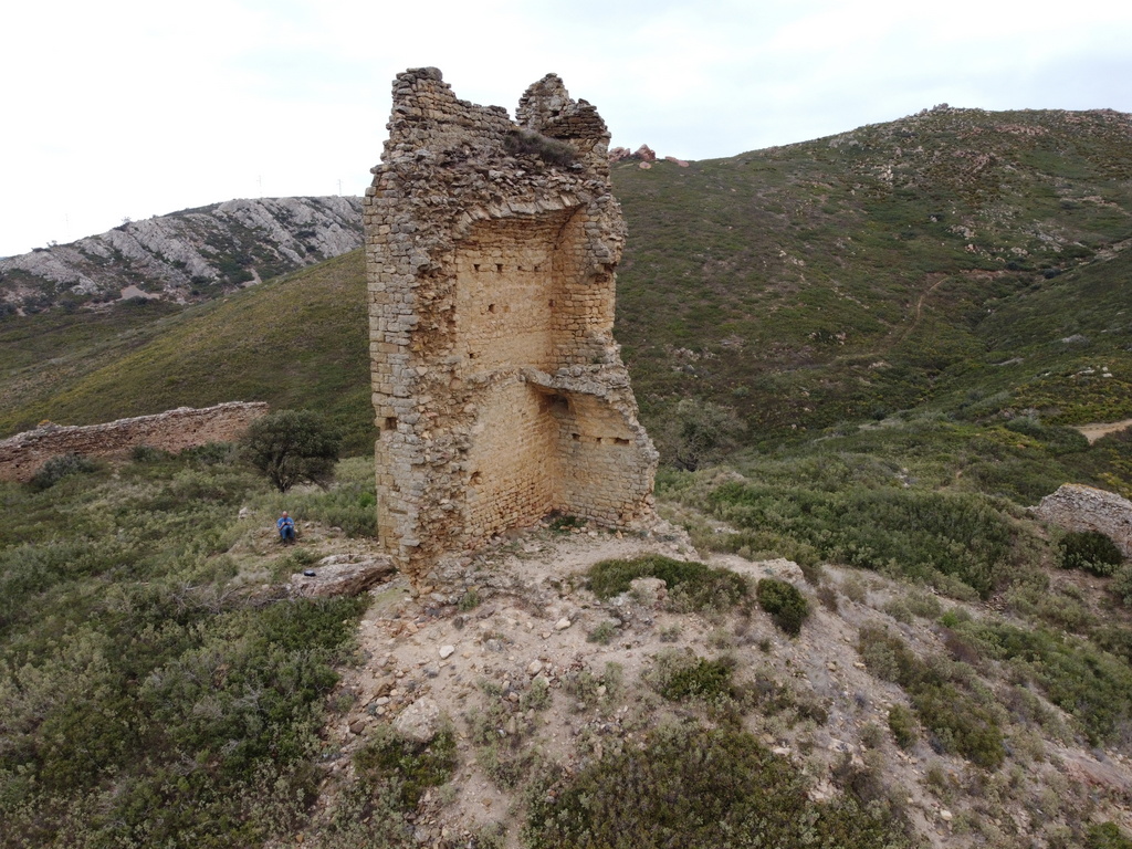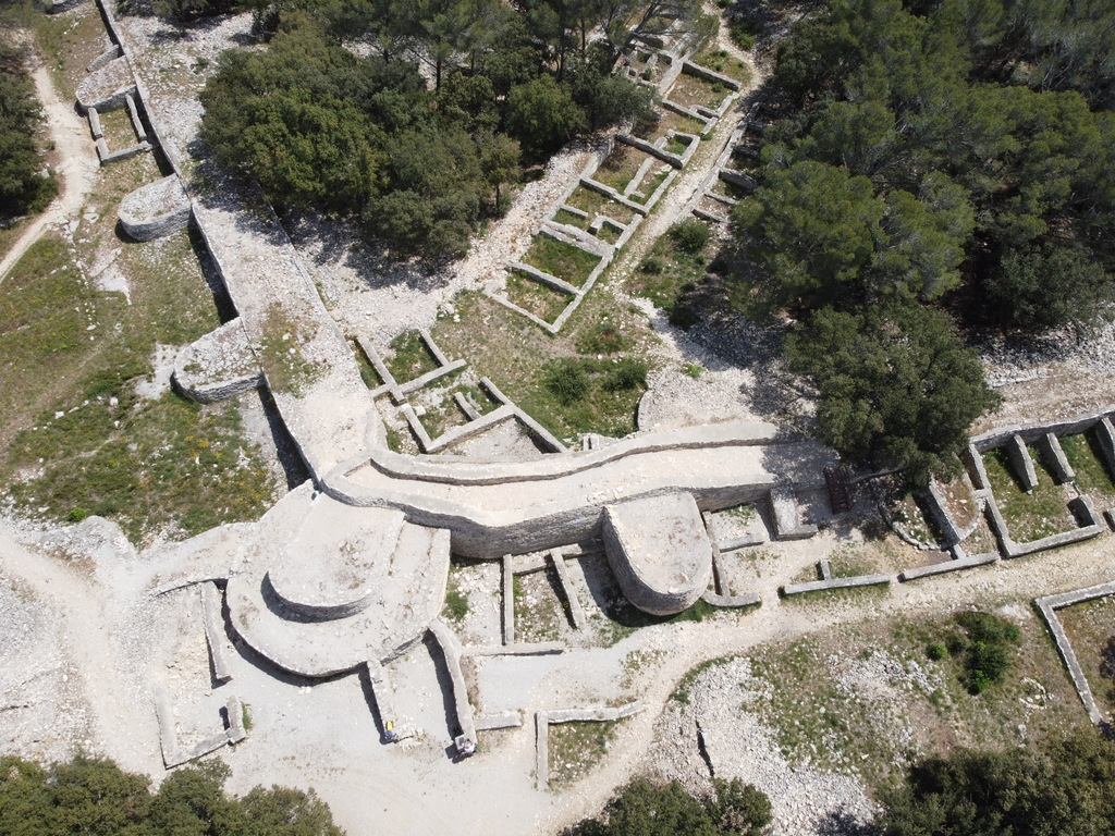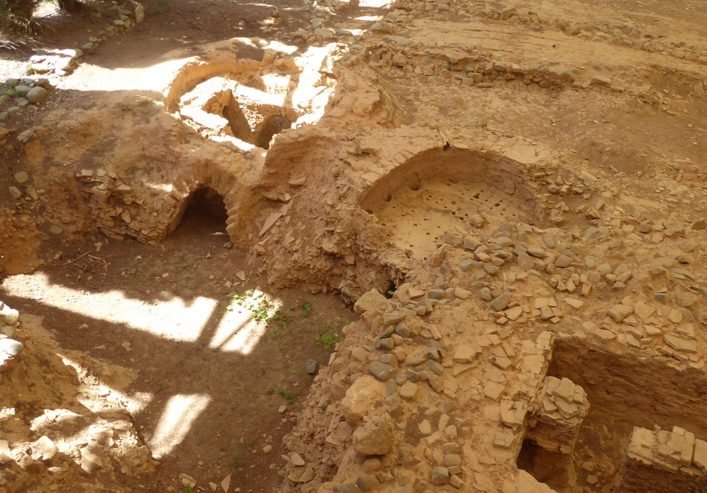 Het bezoek aan een opgraving is een blijft iets voor fijnproevers. Een stuk vrijgemaakte stadsmuur, wel 5 meter hoog. Of dan die 2 – ja wat zijn het – bekkens waar de druiven met mensenvoeten geplet werd voor de wijn. Prachtig toch? Even de drone uit de kast gehaald. Kijk dat levert een aardig plaatje op van wat woningen die tegen de stadsmuur zijn aangebouwd. Doña Blanca lijkt midden in het land te liggen. Toendertijd, 3000 jaar geleden, lag het pal aan nu verzande binnenzee, die reikte tot aan Sevilla.